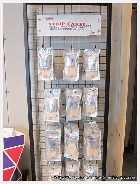 See this creative display for the Strawberry and Chocolate Wax Brazilian Treatment that they have at their counter. Yan Yan Dip-Stick Strawberry Cream Snacks, A big jar of Chupa Chups Strawberry lollipops, Specially created Strip's Chocolate or Strawberry Super Wax badges.. Think when I saw these yummy display, I forgot I was there for a Brazilian Wax.. LOL... ( Yes, customers can help themselves to these sweet treats too..really nice right? )